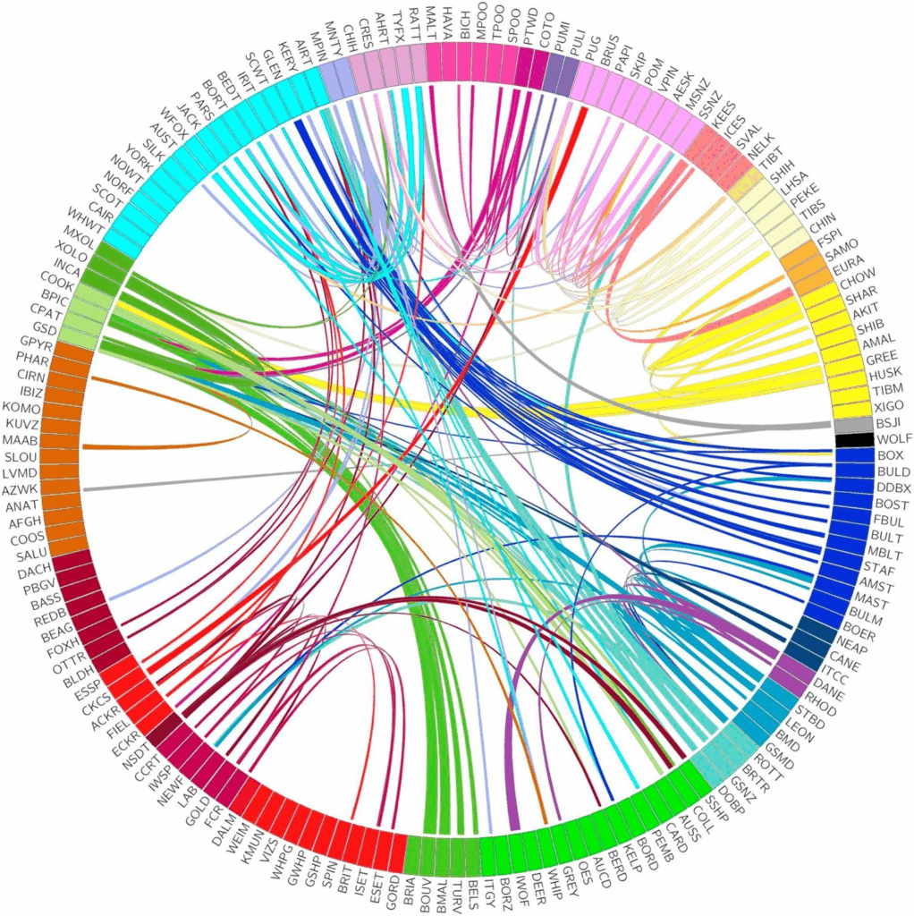 Roduista 117:ssä havaittiin yhteisiä haplotyyppejä muissa kehityslinjoissa olevien koirien kanssa (Kuva 2). Yhteiset haplotyypit ovat osoitus geenivirrasta, jota on tapahtunut roturekisterien syntymisen jälkeisenä aikana, ja joka on johtanut useimpien nykyaikaisten rotujen syntyyn. Kehityslinjojen välillä on siis tehty risteytyksiä uusien ominaisuuksien lisäämiseksi rotuihin.