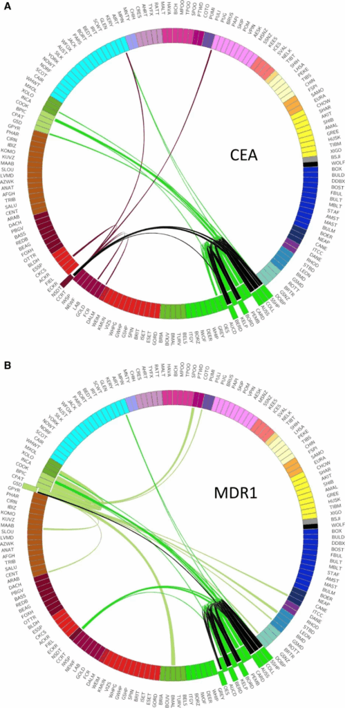 Risteymäanalyysi antaa tietoa myös kehityslinjojen yhteisistä tautigeeneistä (Kuva 3). Esimerkiksi CEA-silmäsairautta (collie eye anomaly) esiintyy useilla paimenkoirilla, jotka kuuluvat Englannin maaseutukoirien kehityslinjaan, mukaan lukien collie, bordercollie, shetlanninlammaskoira ja australianpaimenkoira. Jo aiemmin on selvitetty, että näillä roduilla näyttää olevan yhteinen esi-isä, jolta sairaus on peräisin.